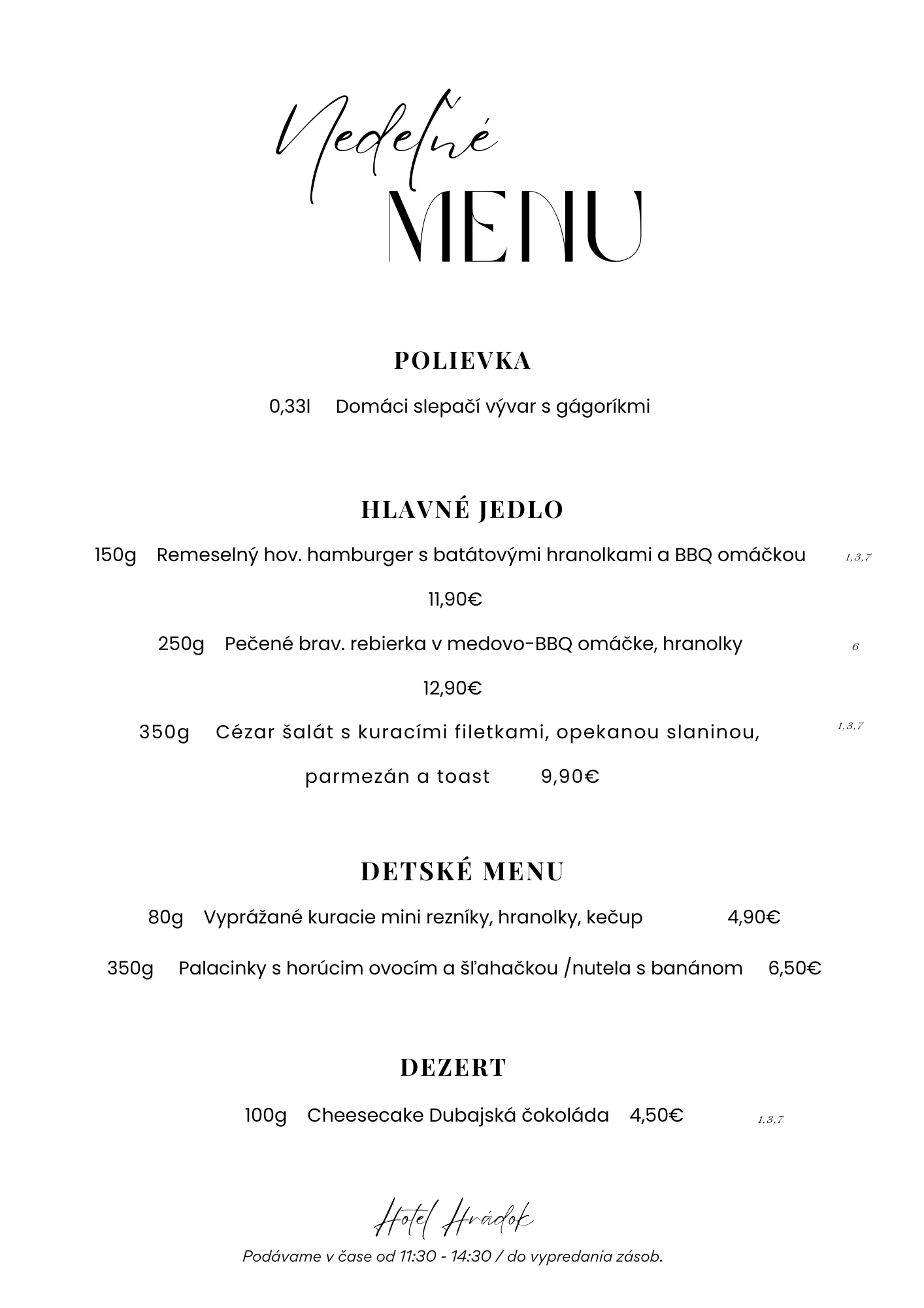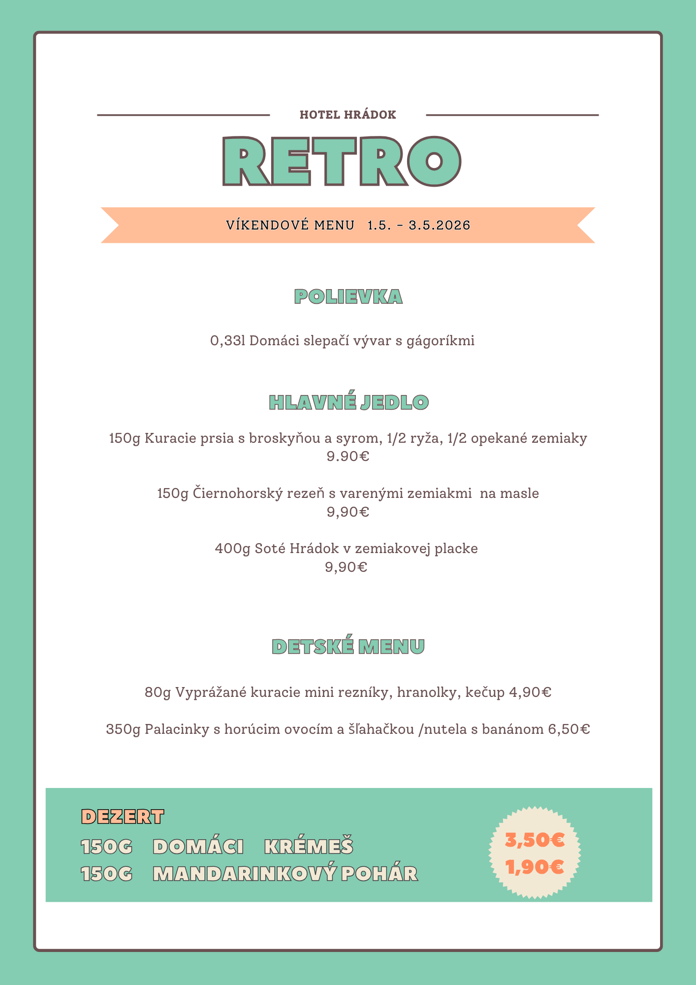 Hotel Hradok si zamilujete aj vdaka vybornej domacej kuchyni. Popri tradičnych slovenskych jedlach ponukame aj nove moderne jedla vytvorene v spolupraci so sefkucharom Jozefom Brezom.